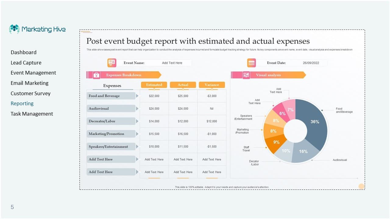 The event management feature includes comprehensive budget management tools, allowing you to plan and track your expenses effectively. This helps ensure your events stay within budget and maximize ROI.